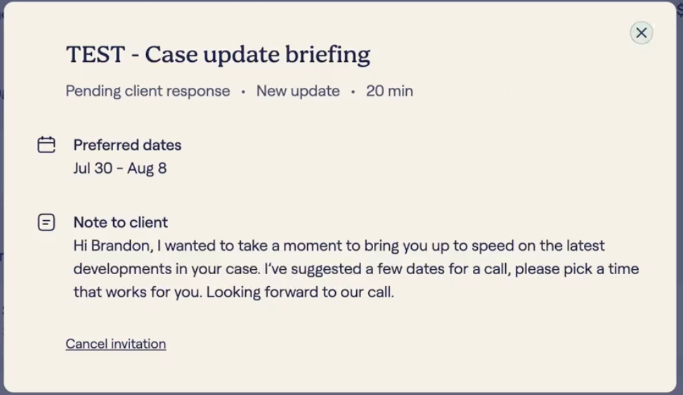 Personalized Experience: Preset meeting types tailored for attorneys. Whether it's a case update, court preparation, or other meetings, each type is predefined for their convenience