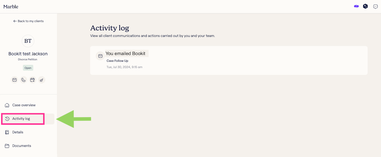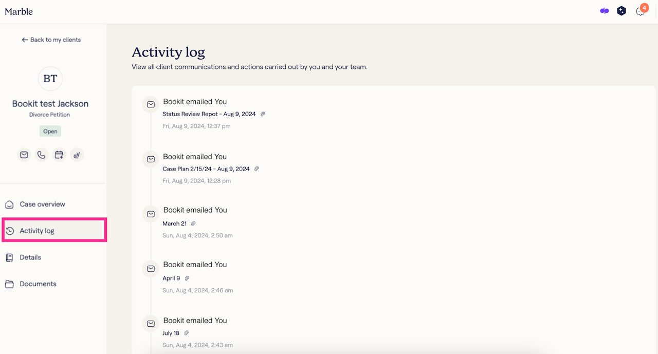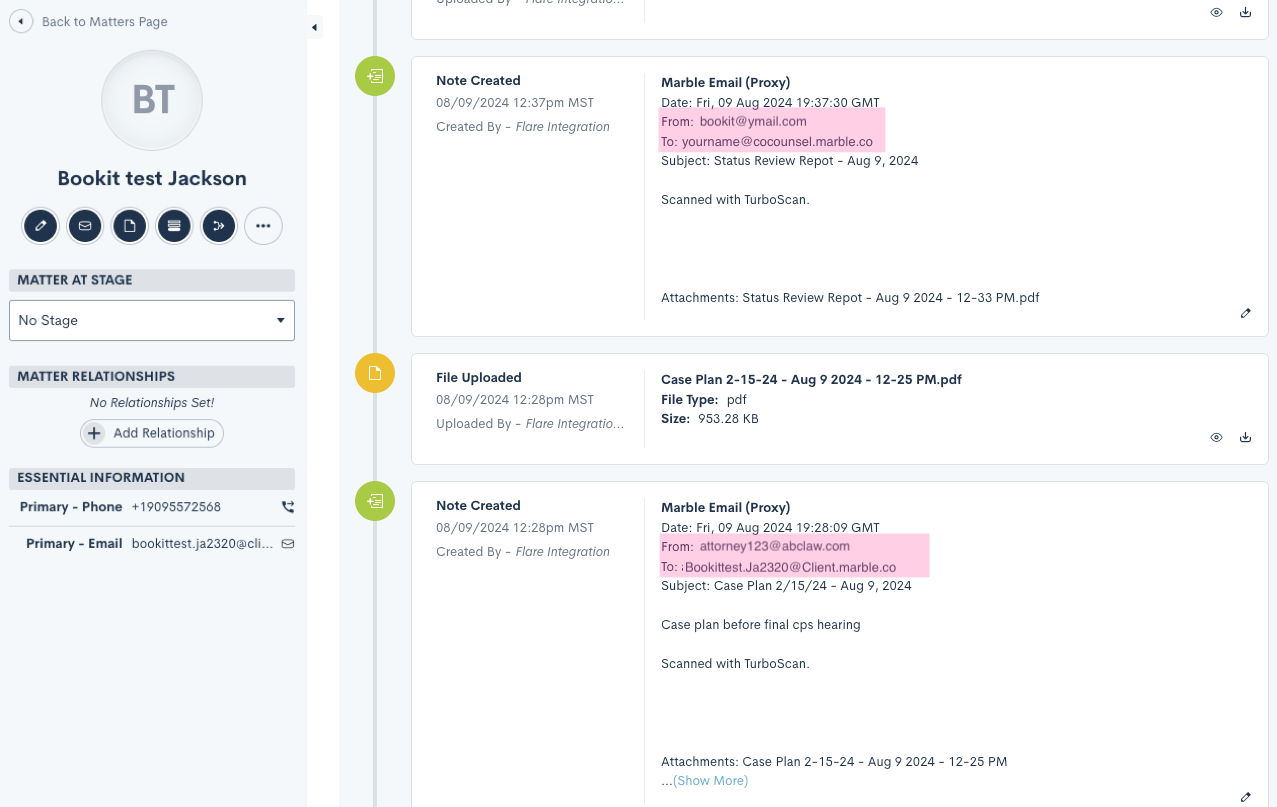 All email exchanges automatically sync with Marble Attorney Home, ensuring everyone has easy access to communication history